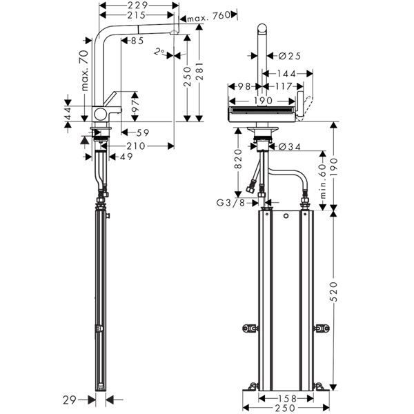 • består av: 1-grepps köksblandare, slanglåda, flerfunktionssil
