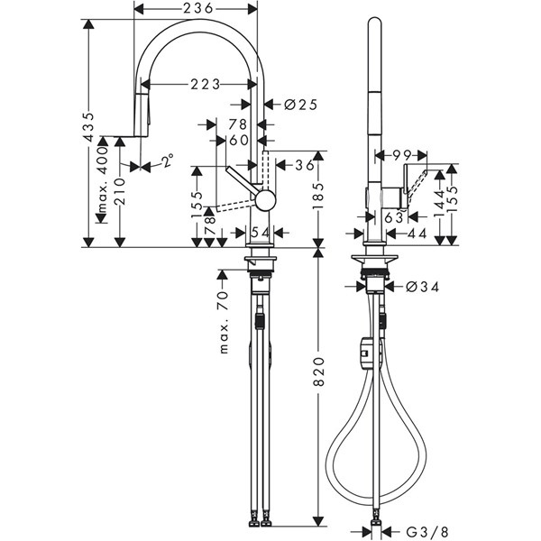 Talis M54 köksblandare 210, utdragbar handdusch, 2jet Borstad svartkrom