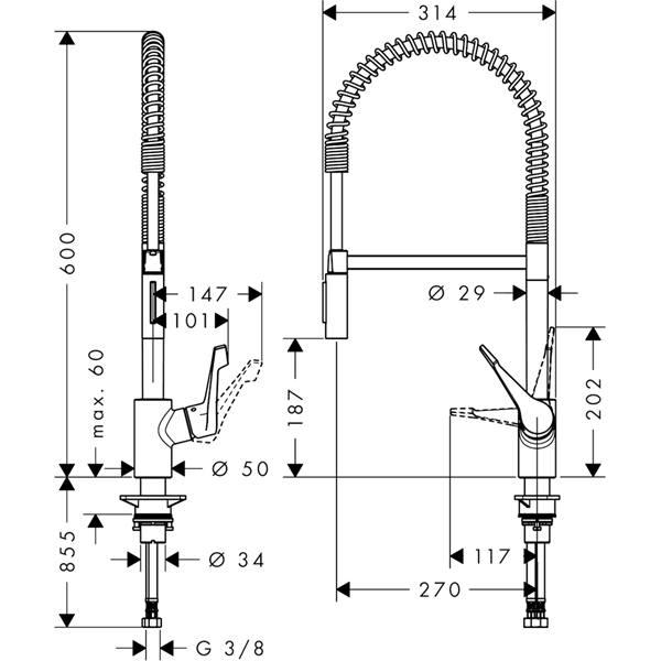 • maximal flödesmängd vid 3 bar: 10 l/min