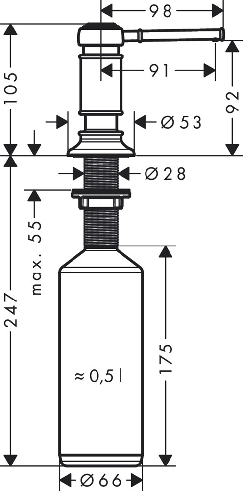 • fyllningskapacitet 500 ml