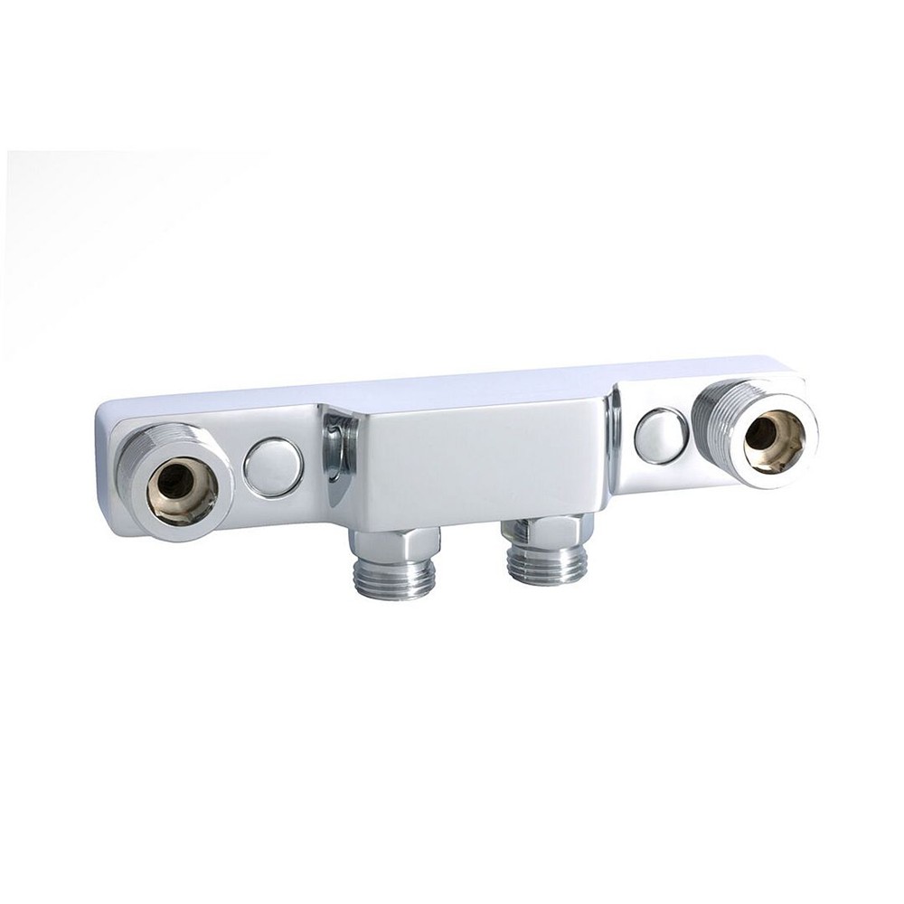 Förkromat och stabilt blandarfäste avsett för utanpåliggande rördragning med anslutningsrör i 40 cc. I en ny, tajt modell tillverkad i mässing. Anslutning mot blandare G20 och anslutning till inlopp G15, för både plan- och kontätning. Modellen är vändbar.
