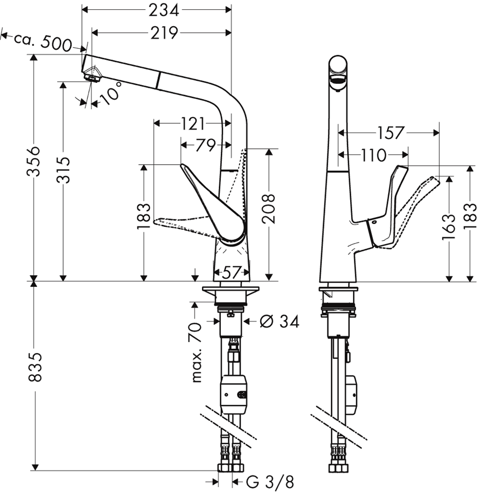Metris M71 320 Köksblandare med Utdrag, Rostfri finish