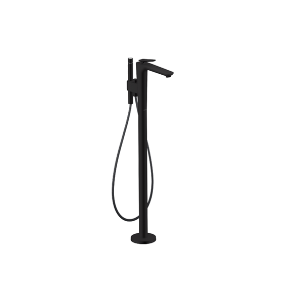 • består av: 1-grepps badkarsblandare för golvmontering, pinnhanddusch, duschslang, duschhållare