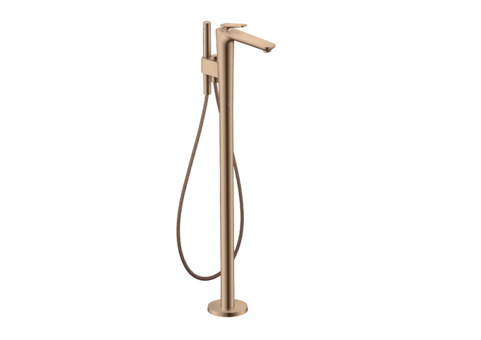 • består av: 1-grepps badkarsblandare för golvmontering, pinnhanddusch, duschslang, duschhållare