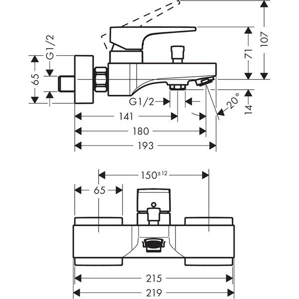 | Produkttyp | Badkarsblandare Väggmonterad |