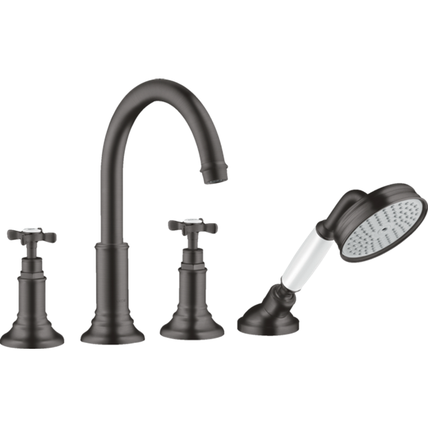 Montreux 4-håls badkarsblandare montering i kant Borstad Svartkrom
