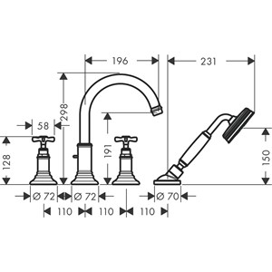 • består av: 4-håls badkarsblandare för kant, handdusch, duschslang, duschhållare