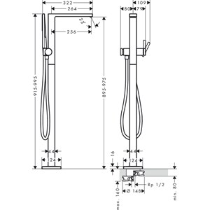 | Produkttyp | Badkarsblandare Golvmonterad |