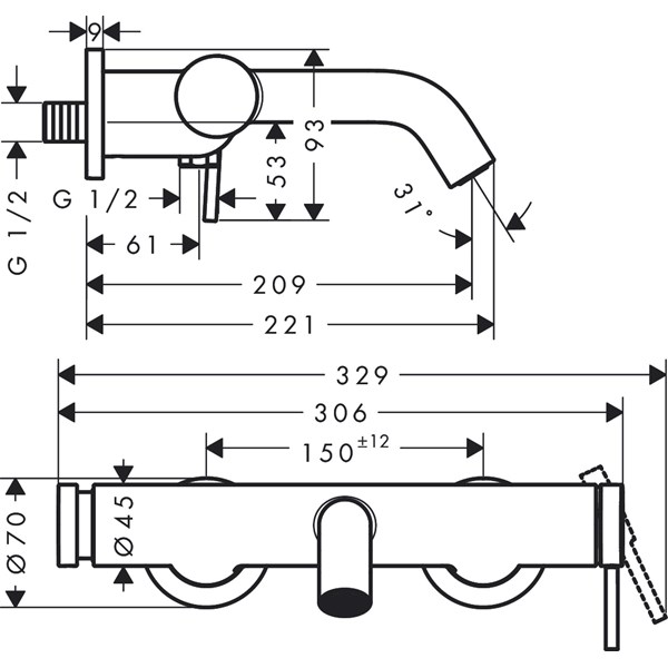 | Produkttyp | Badkarsblandare Väggmonterad |