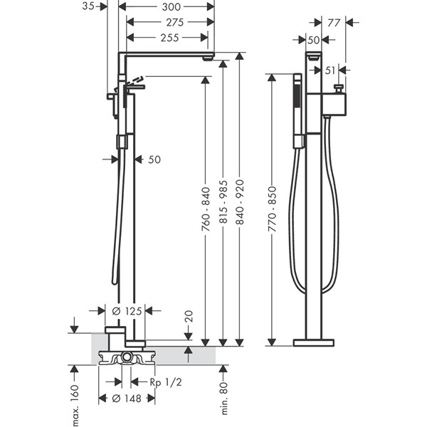 | Produkttyp | Badkarsblandare Golvmonterad |