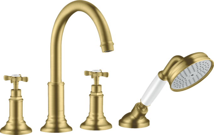 Montreux 4-håls badkarsblandare montering i kant Borstad mässing