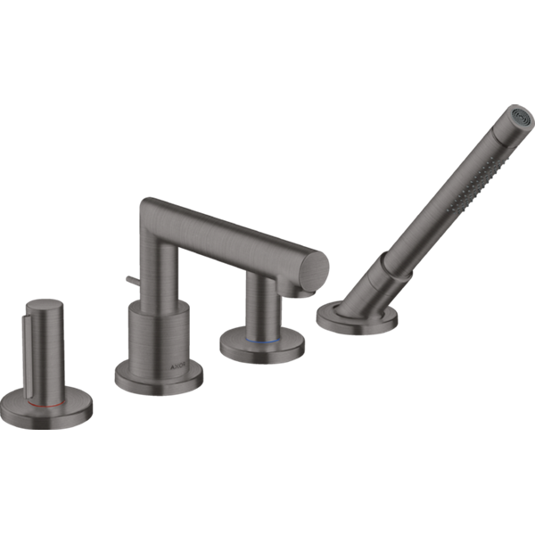 Uno 4-håls badkarsblandare med zero-grepp montering i karkant Borstad Svartkrom