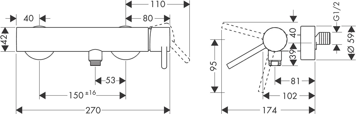 • flödesmängd handdusch vid 3 bar: 16 l/min