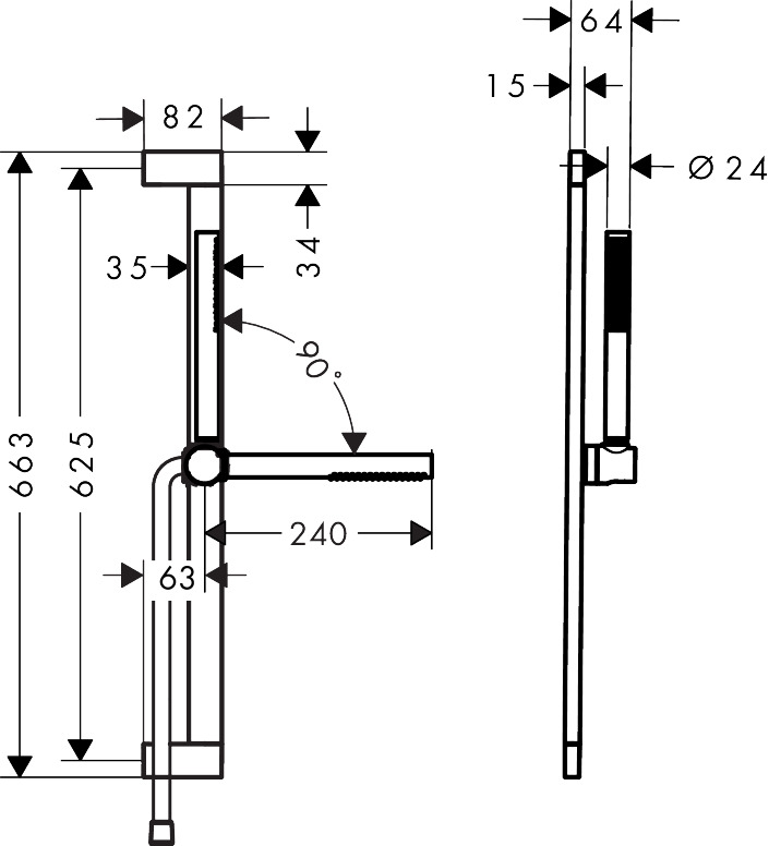 • består av: pinnhanddusch, duschstång, duschslang, glidfäste