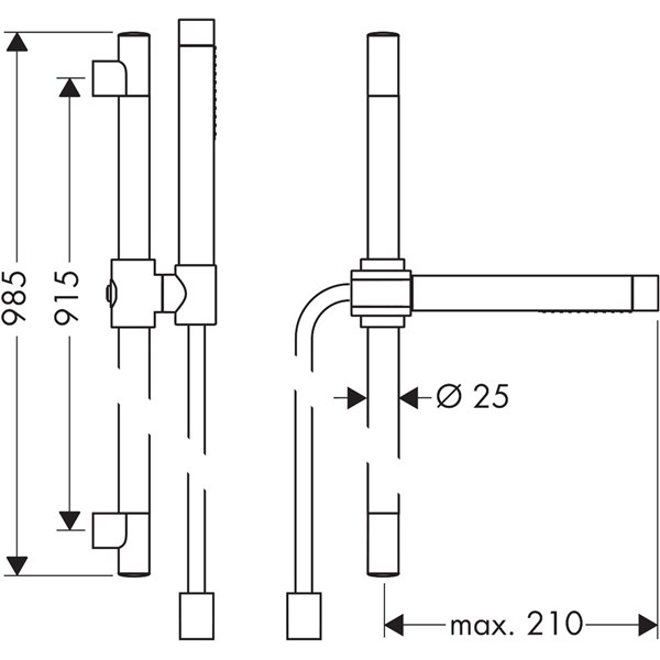 • består av: duschstång, pinnhanddusch, duschslang, glidfäste