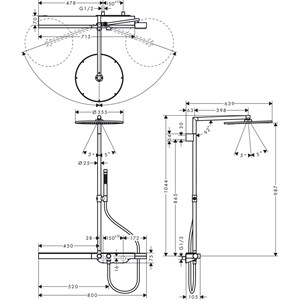 • duscharmslängd huvuddusch: 400 mm