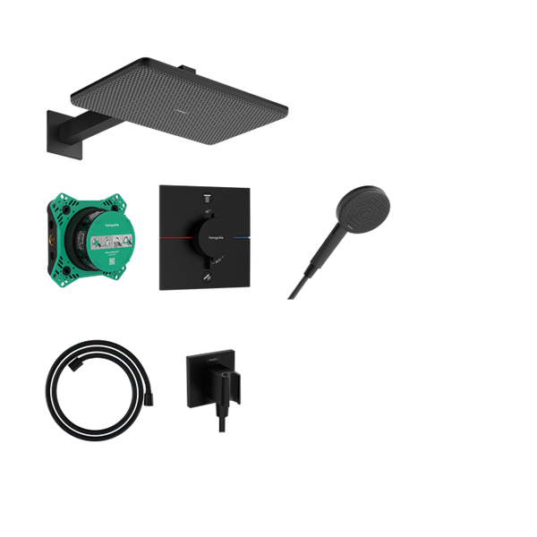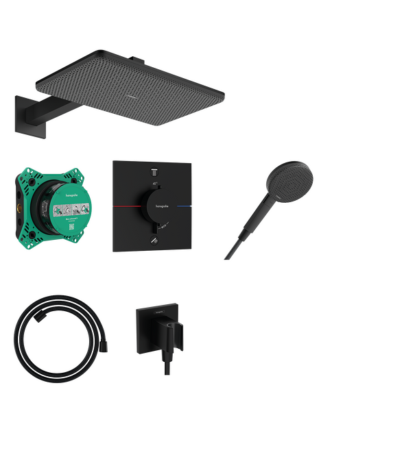 Raindance Alive Q Duschsystem 210/340 1jet EcoSmart med termostat med iBox unive Mattsvart