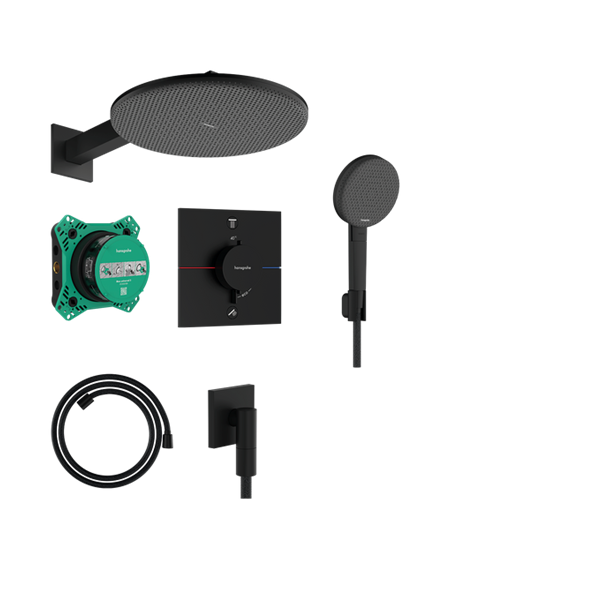 Raindance Alive S Duschsystem 300 1jet med termostat med iBox universal, duschar Mattsvart