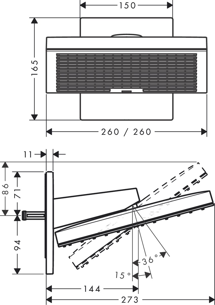• Fast Drain tömmer huvudduschen från en vinkel på 10°