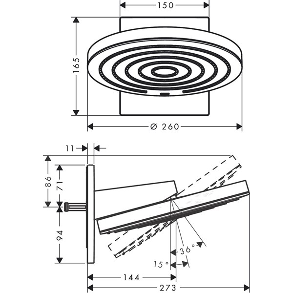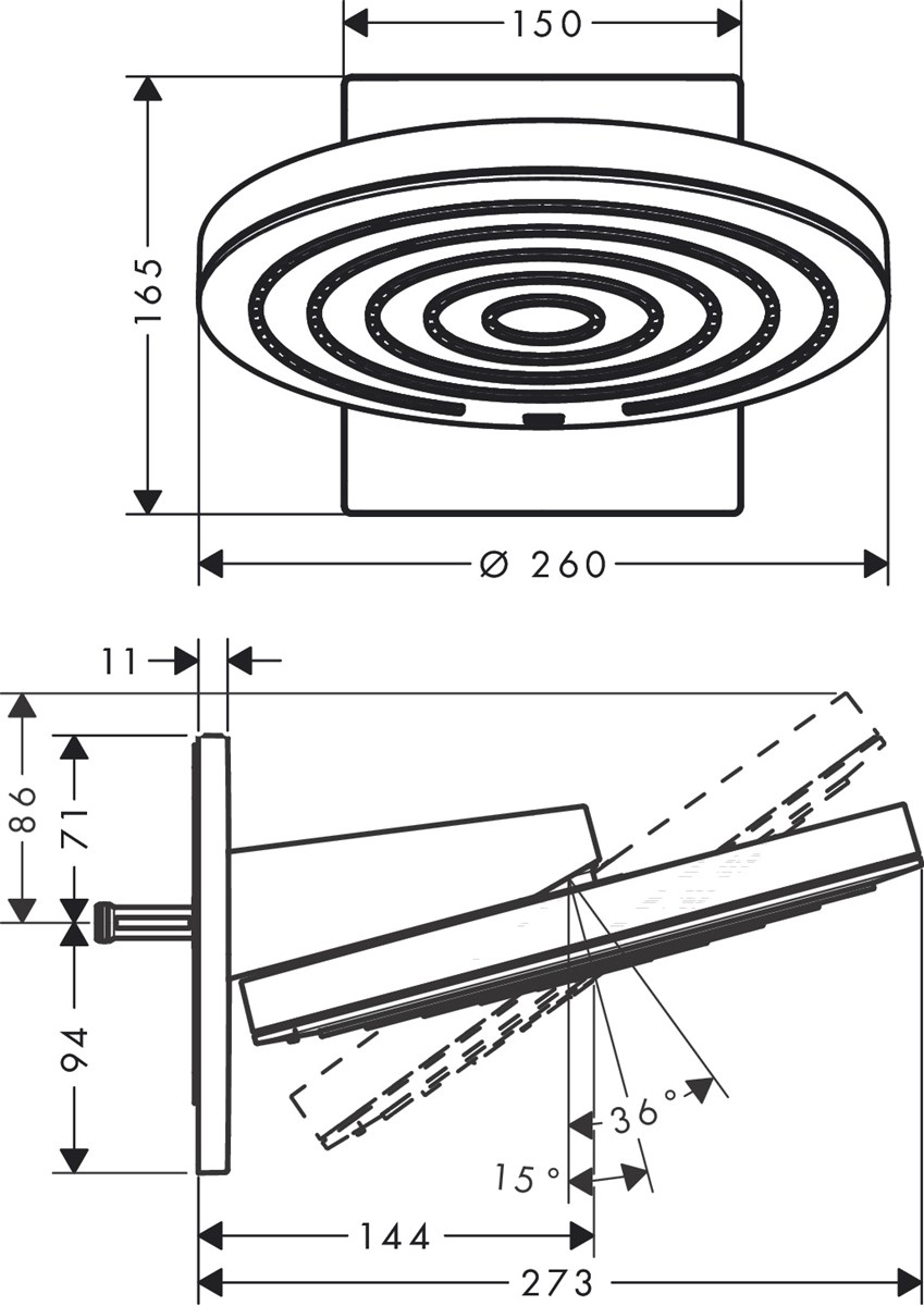 • duschhuvud storlek: 260 mm