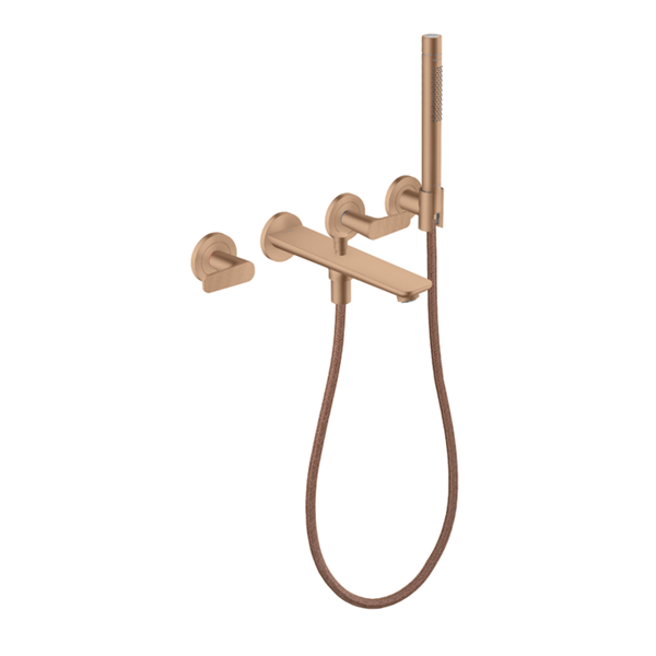 Citterio C 3-håls karblandare färdigset för väggmontage med handdusch - cubic cu Borstad Rödguld