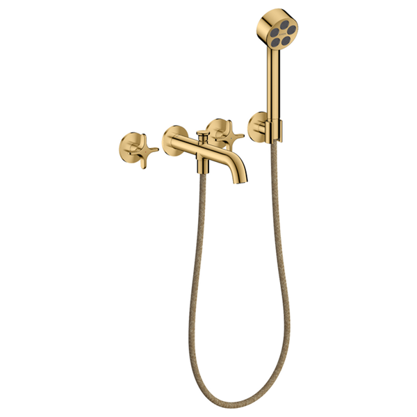 One 3-håls karblandare för inbyggnad vägg med krysshandtag och handdusch Polerad Guld