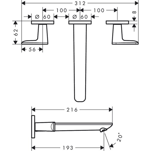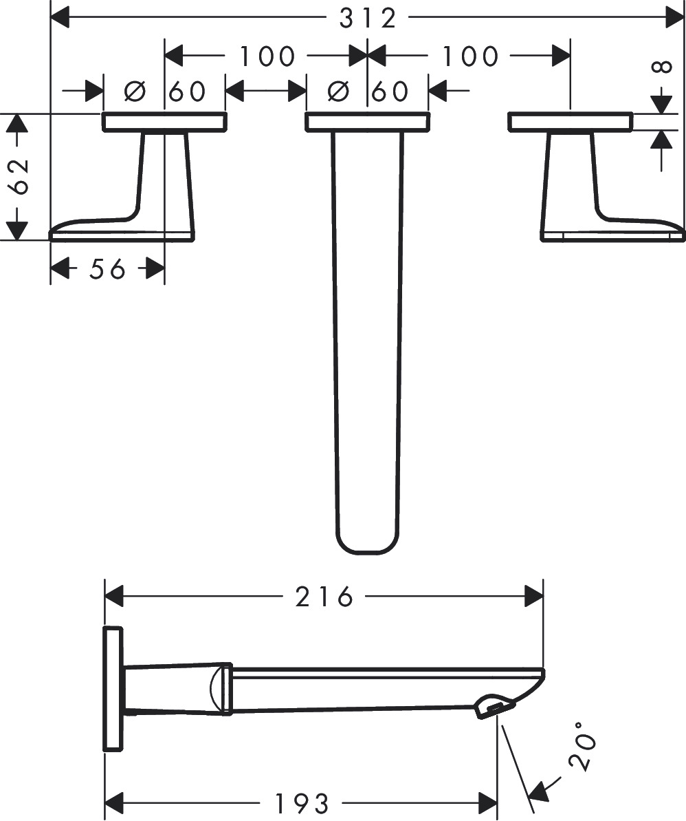 • består av: 3-håls tvättställsblandare för inbyggnad i vägg, bottenventil