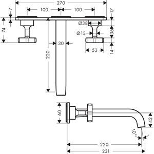 • består av: 3-håls tvättställsblandare för inbyggnad i vägg, bottenventil