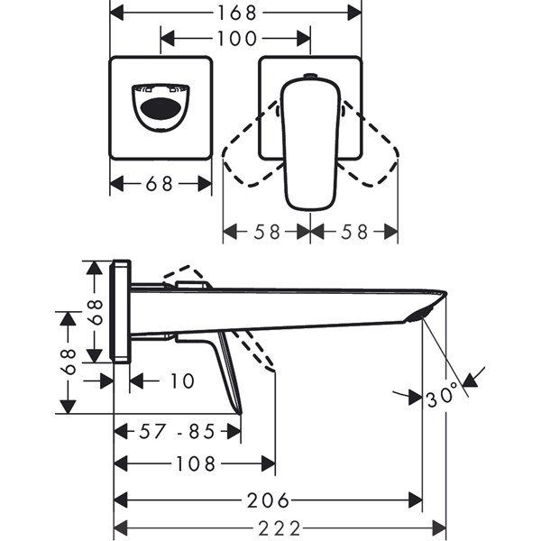 Logis tvättställsblandare inbyggnad vägg Fine med 20,5 cm pip Mattsvart