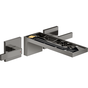 MyEdition 3-håls tvättställsblandare inbyggnad vägg med 221 mm pip, utan ovansid Polerad Svartkrom