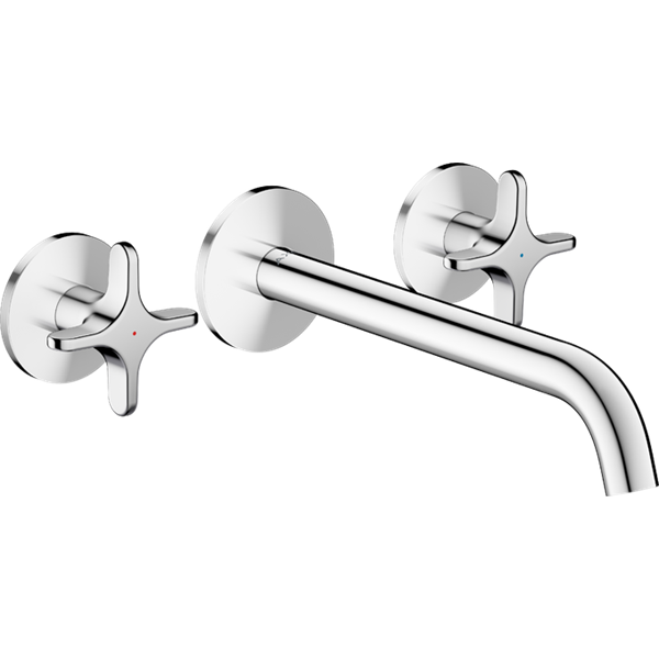 One 3-håls tvättställsblandare för inbyggnad vägg med 220 mm pip och krysshandta