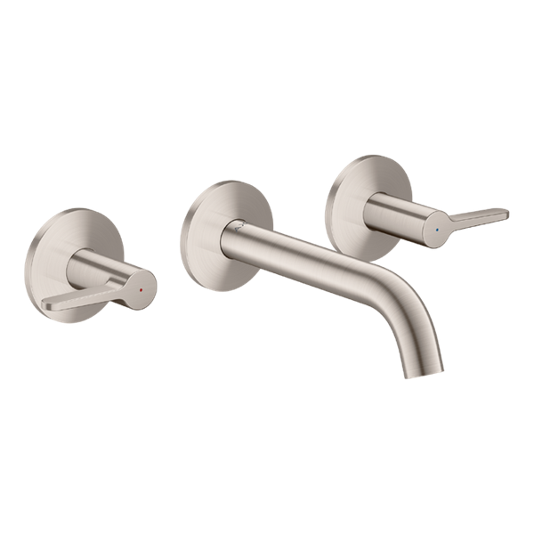 One 3-håls tvättställsblandare för inbyggnad vägg med 160 mm pip Rostfri finish