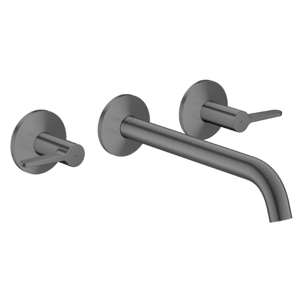 One 3-håls tvättställsblandare för inbyggnad vägg med 220 mm pip Borstad Svartkrom