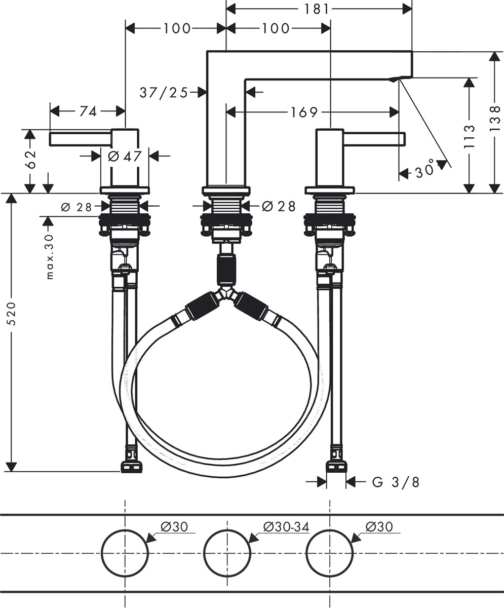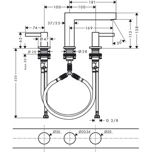 • består av: 3-håls tvättställsblandare, bottenventil