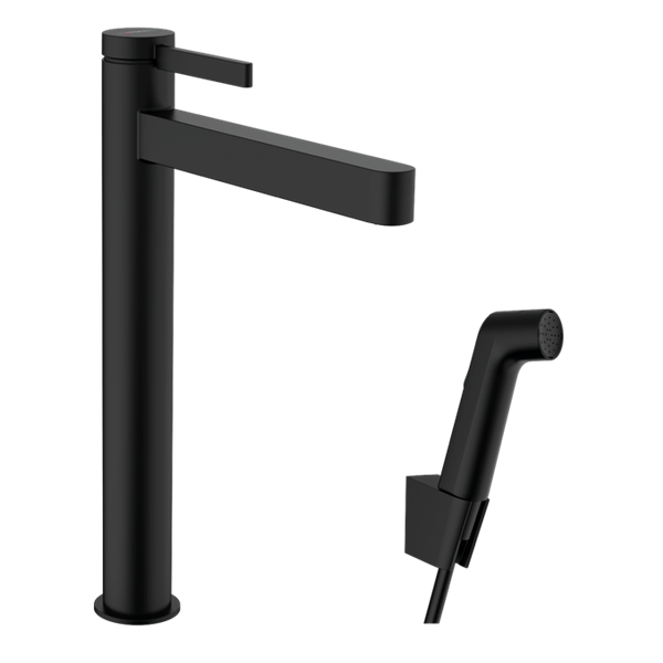 Finoris tvättställsblandare 260 med bidettehanddusch och 160 cm duschslang Mattsvart