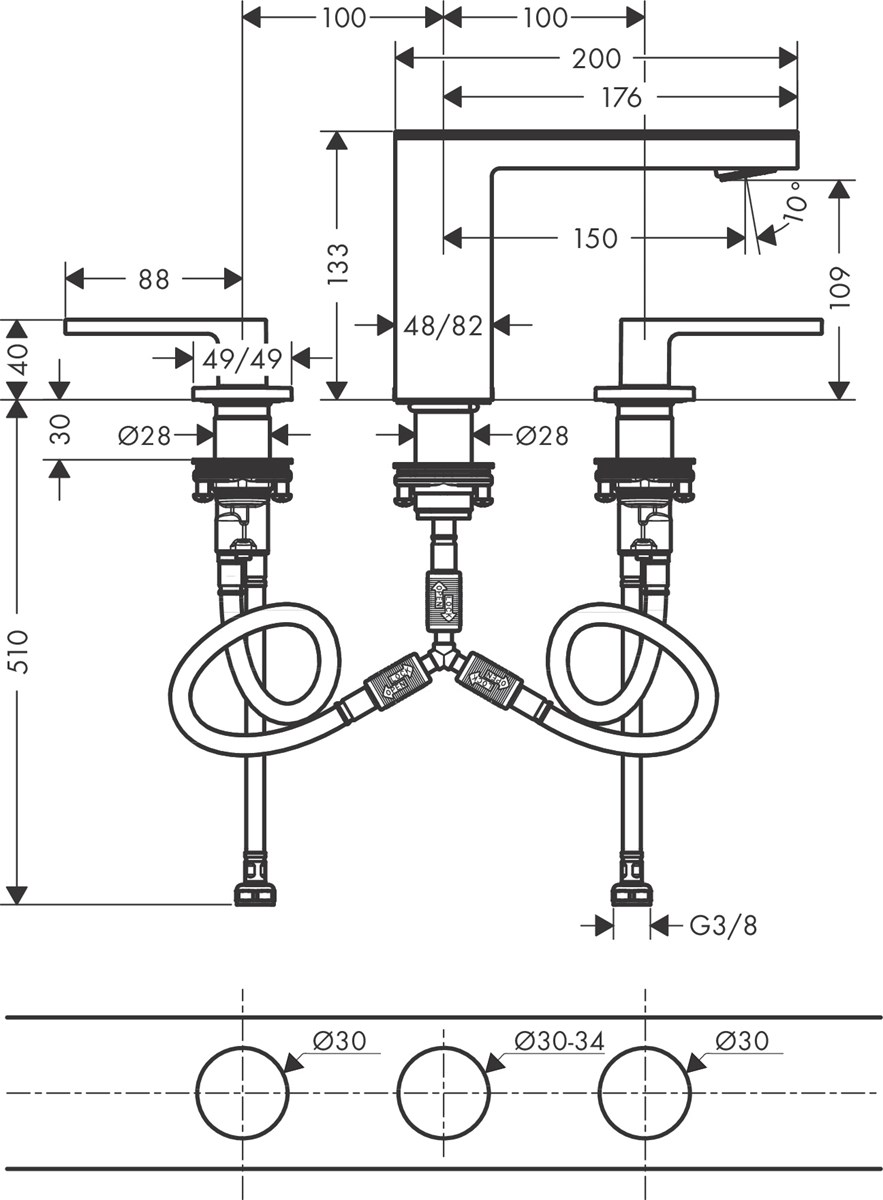 • består av: 3-håls tvättställsblandare, platta, bottenventil