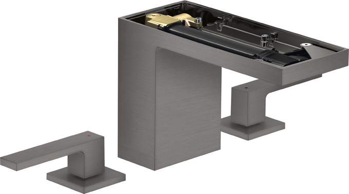 MyEdition 3-håls tvättställsblandare 110 med push-open ventil utan ovansida Borstad Svartkrom