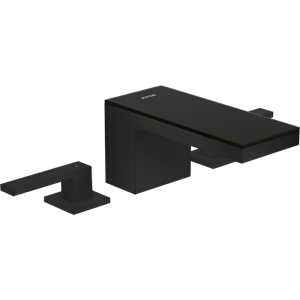 MyEdition 3-håls tvättställsblandare 70 med push-open ventil Mattsvart/svart gla