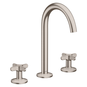One 3-håls tvättställsblandare 170 med krysshandtag och push-open ventil Rostfri finish