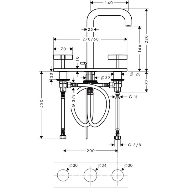 • består av: 3-håls tvättställsblandare, bottenventil