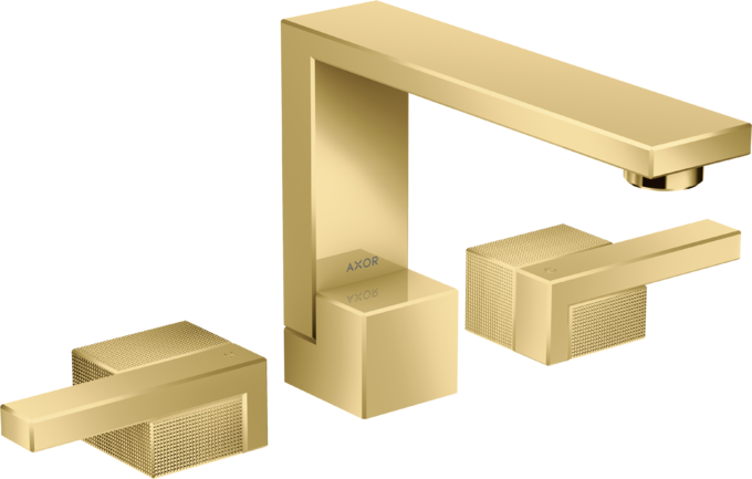 Edge 3-håls tvättställsblandare med push-open ventil - diamantslipad Polerad guldfinish