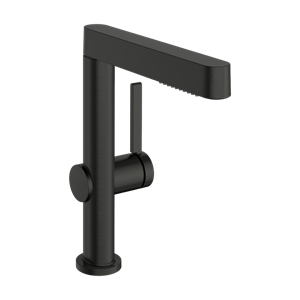 Finoris tvättställsblandare 230 med svängbar pip och push-open ventil Borstad Svartkrom