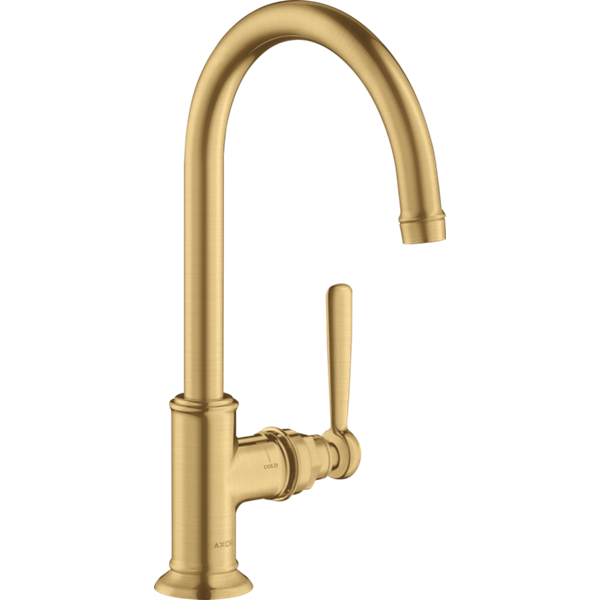 Montreux tvättställsblandare 210 med svängbar pip, utan lyftventil Borstad guldfinish