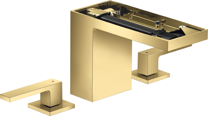 MyEdition 3-håls tvättställsblandare 110 med push-open ventil utan ovansida Polerad guldfinish