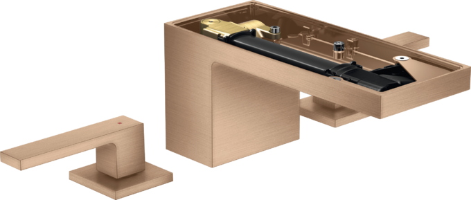 MyEdition 3-håls tvättställsblandare 70 med push-open ventil utan ovansida Borstad rödguld