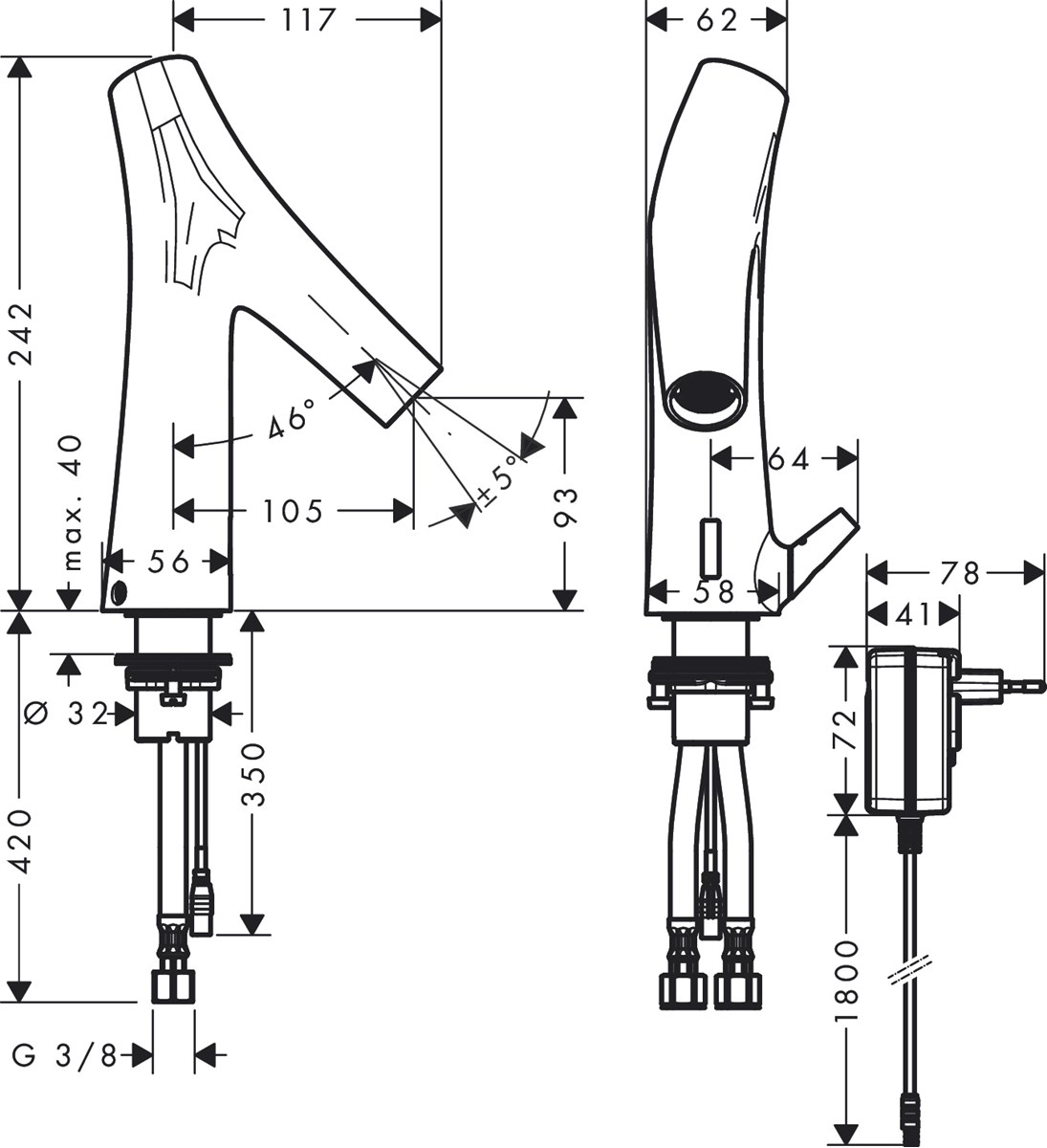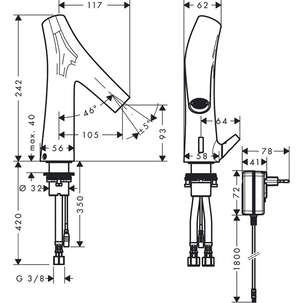 • aktiverbar hygienisk sköljning (automatiskt vattenflöde)