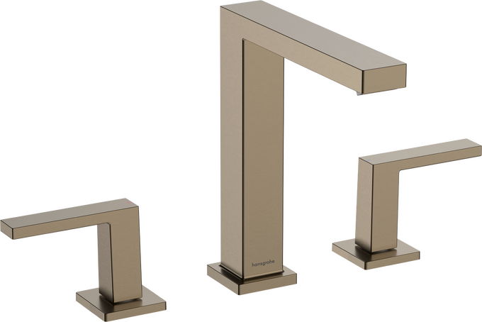 Tecturis E 3-håls tvättställsblandare 150 EcoSmart+ med push-open ventil Borstad brons