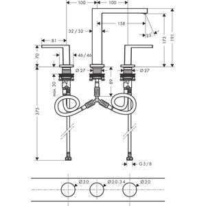 • består av: 3-håls tvättställsblandare, bottenventil