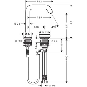 • består av: 2-håls tvättställsblandare, bottenventil