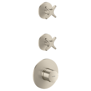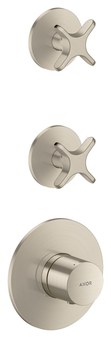One Termostatmodul inbyggnad med 2 funktioner och krysshandtag Borstad Nickel
